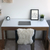 Escritorio con estructura en madera maciza de petiribi y tapa laqueada antimanchas o madera petiribi enchapada. Cajones con guías telescópicas, enchapados en madera petiribi, con interior en melamina.